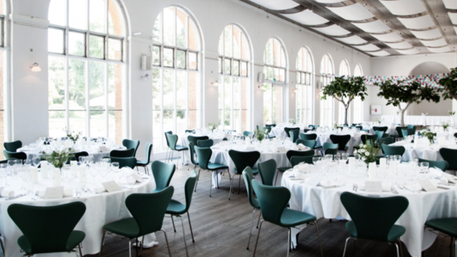 Et gammelt FDB-lagerlokale i en kælder centralt på Islands Brygge er i dag omdannet til et rustikt og cool venue, der ligeledes er populært til byens bryllupper. Med åbent køkken, plankeborde, pæne klassiske stole fra Engelbrechts (hvis nu der er andre end mig der også går op, hvordan stolene ser ud, ahem) og en gennemført rå stil. Som et ekstra plus hører der en hyggelig gårdhave til venuet, hvor det fineste loungeområde stables på benene, når der er fest.